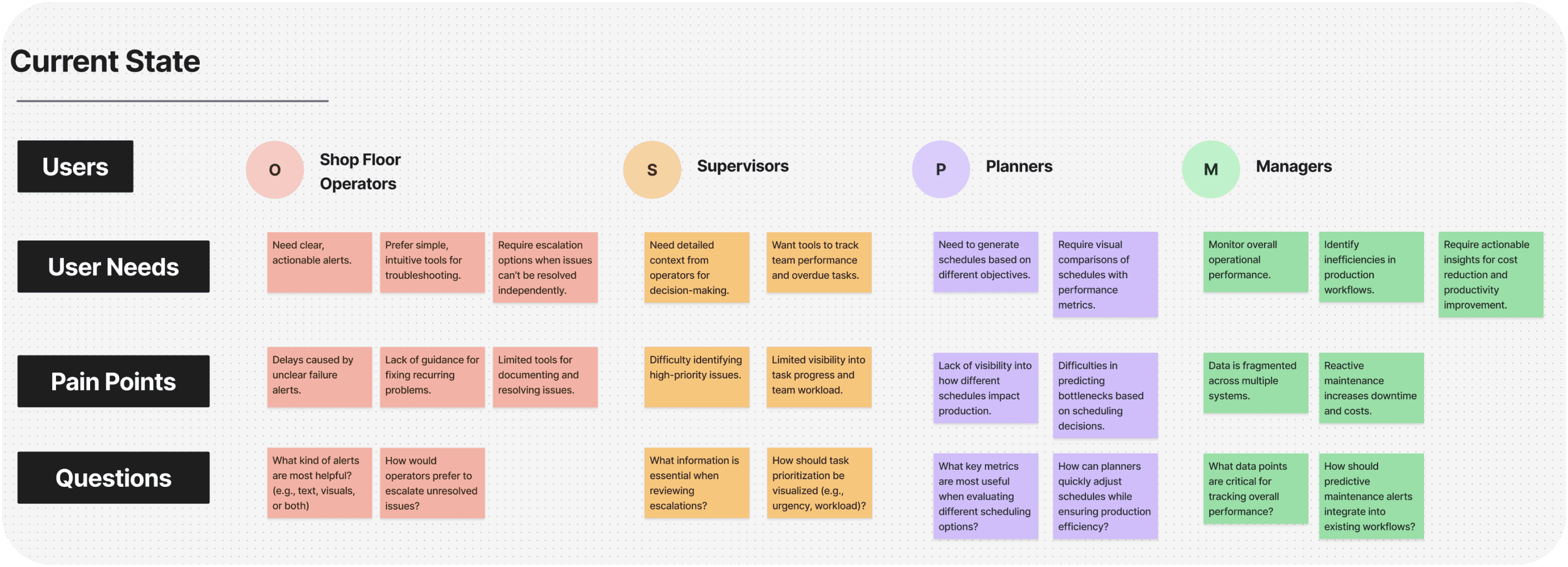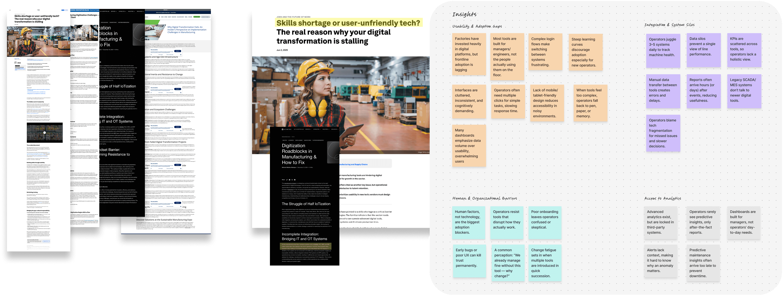 I reviewed 6+ industry reports and whitepapers on digital transformation in manufacturing. This research gave me a high-level view of the market, confirming that the problems surfaced in discovery were not unique to our client, but part of a wider industry pattern.